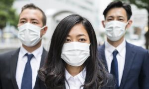 japanese Business man with pollution mask in Tokyo